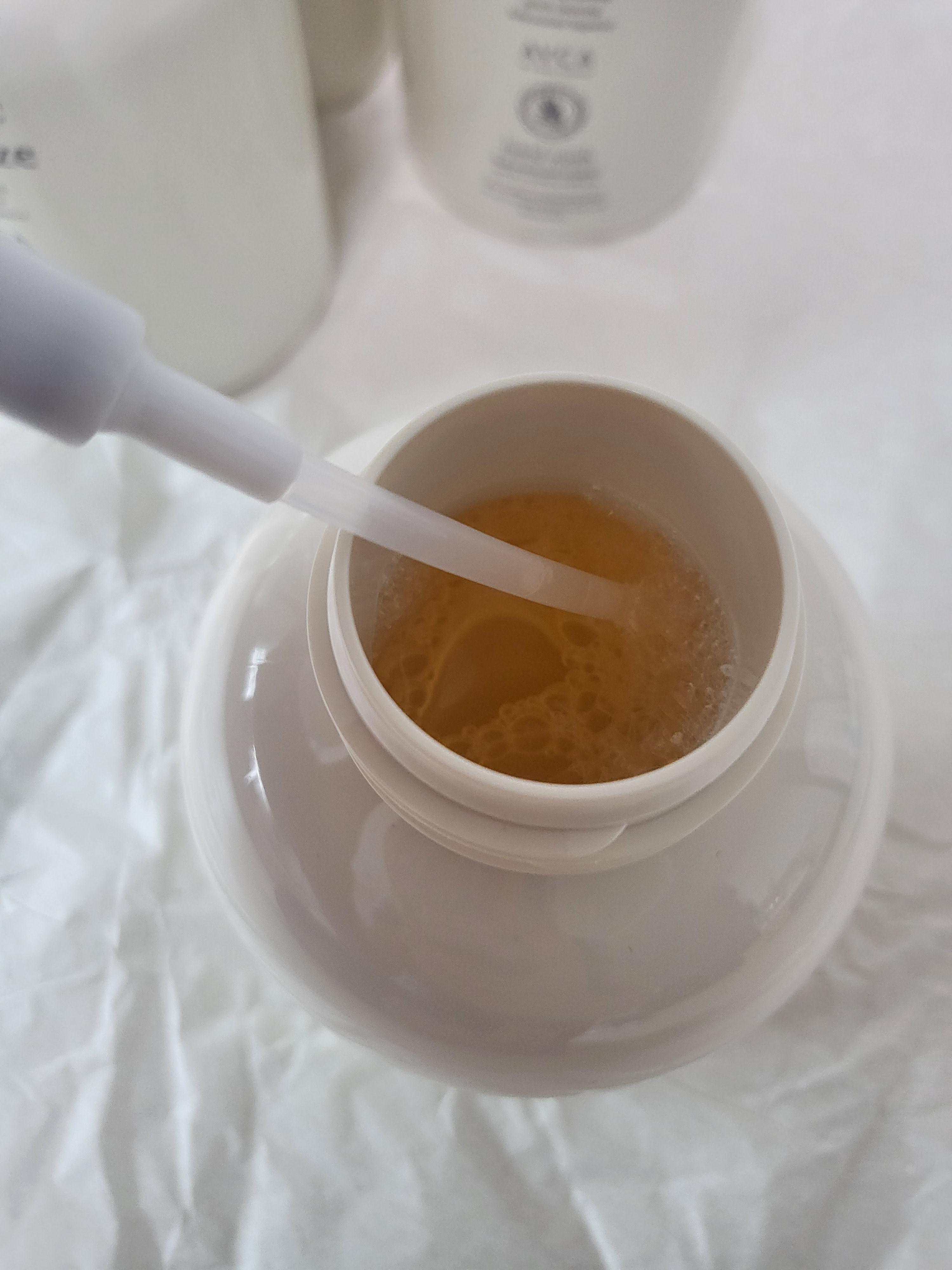 내용물 안에는 노란끼가 도는 핸드워시가 들어있어요.