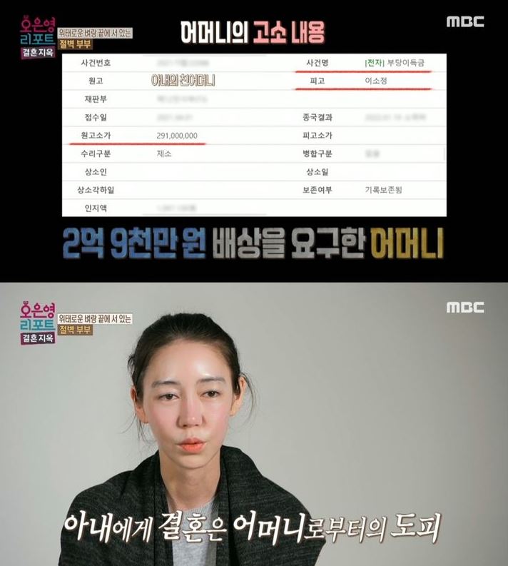 이소정님은 엄마에게 벗어나기 위해 결혼했는데, 혼인신고 한 것을 안 엄마가 고소장을 보냈다고 합니다.